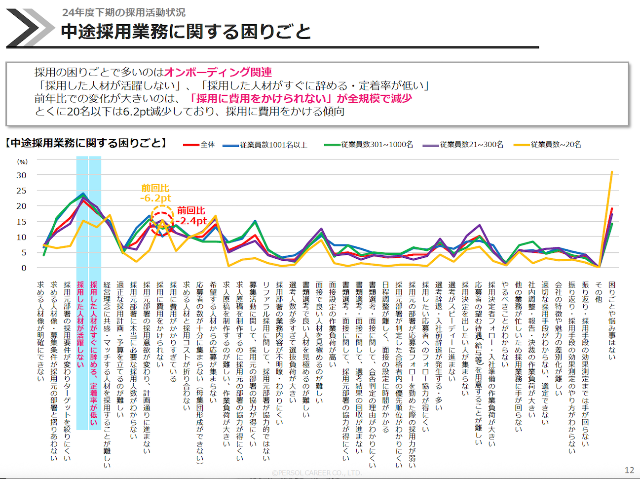 ――「中途採用業務に関する困りごと」について、調査ではどのような傾向が見られますか。