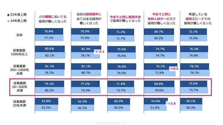 ──調査では従業員規模別に「採用難度」についても聞いていますが、やはり高止まりの傾向なのでしょうか。