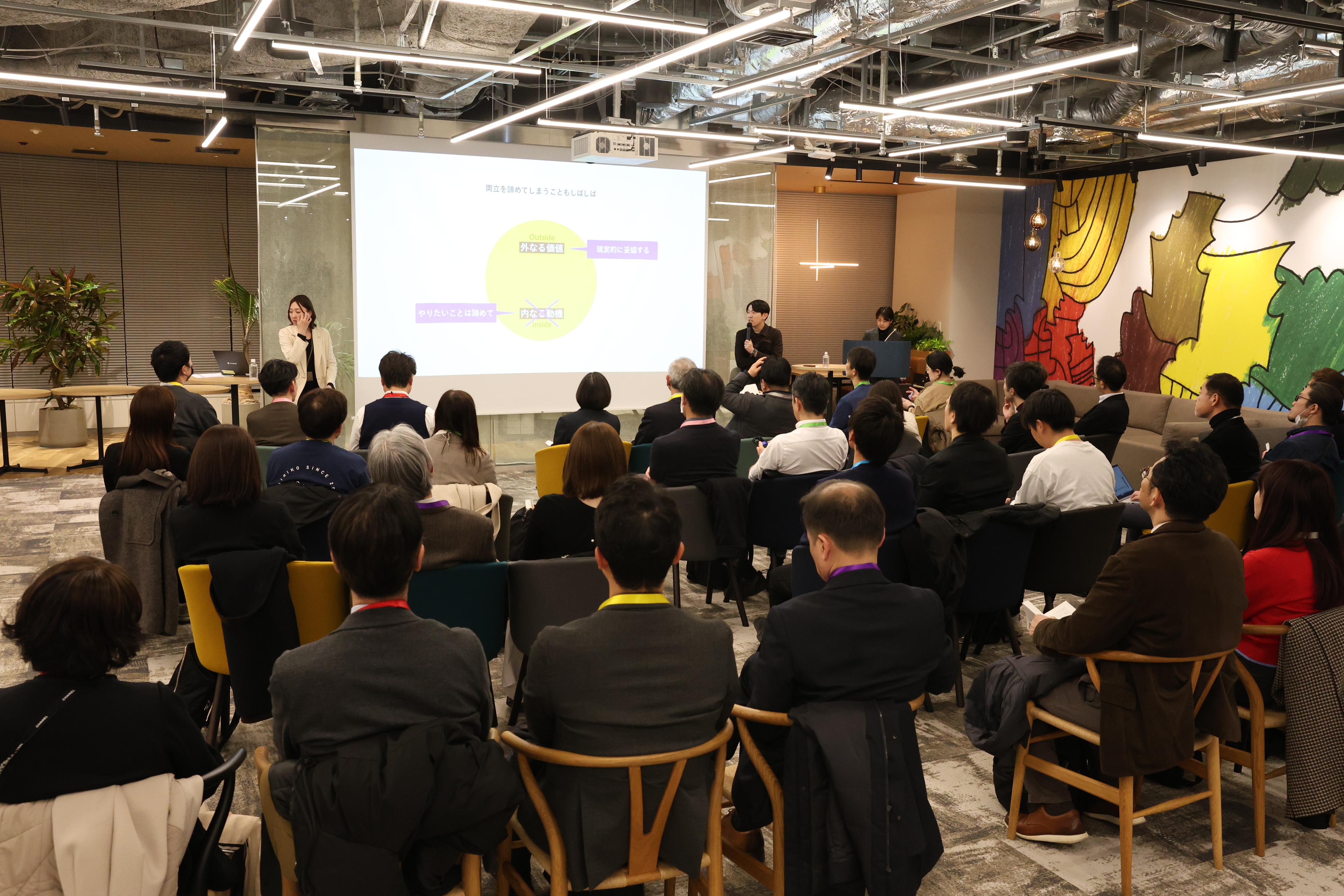 講義後の交流会では、「軍事的なマネジメントと冒険的なマネジメントは両立できるのか」「人は本当に変わるのか」「エンゲージメントやキャリア自律をどう経営に説明すればよいのか」といった、極めて実務的で切実な問いが数多く聞こえてきました。