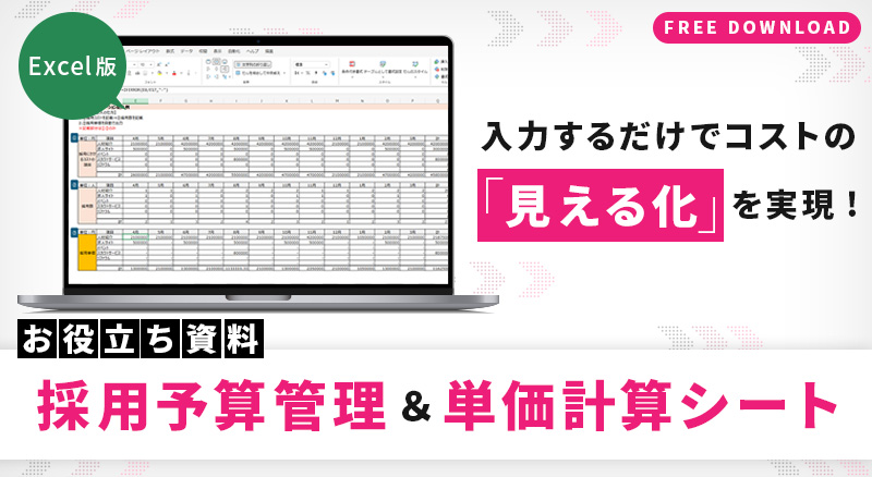 本シートは、予算の過不足や採用単価を「見える化」することで、戦略的な採用予算配分をサポートします。予算を入力するだけで、月別・項目別の合計や単価が自動計算され、採用業務の効率化にも貢献。ぜひご活用ください。